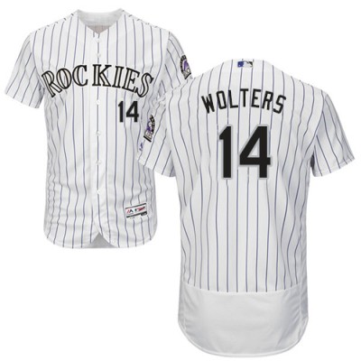 Colorado Rockies #14 Tony Wolters White Strip Flexbase Authentic Collection Stitched MLB Jersey Men’s