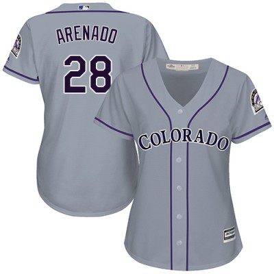 Colorado Rockies #28 Nolan Arenado Grey Road Women’s Stitched MLB Jersey Womens