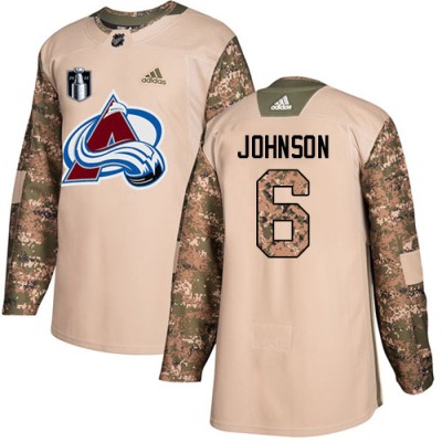 Adidas Colorado Avalanche #6 Erik Johnson Camo 2022 Stanley Cup Final Patch Authentic Veterans Day Stitched NHL Jersey Men’s